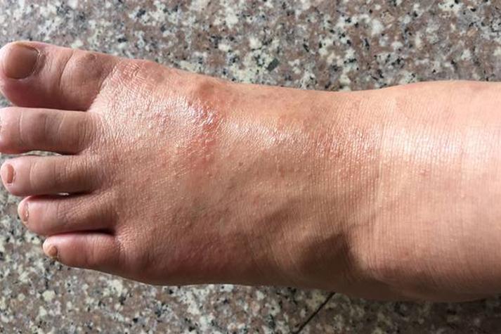 一种常见的慢性、炎症性、瘙痒性皮肤病,可以发生在身体的任何部位,包括脚背。