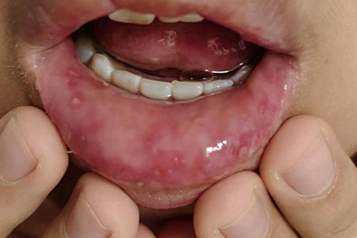 - 口腔内可能出现多个小水疱或大面积的红肿。