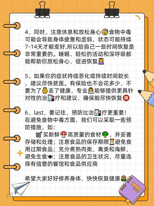 - 孕妇: 食物中毒可能影响胎儿,出现任何症状都应立即就医。