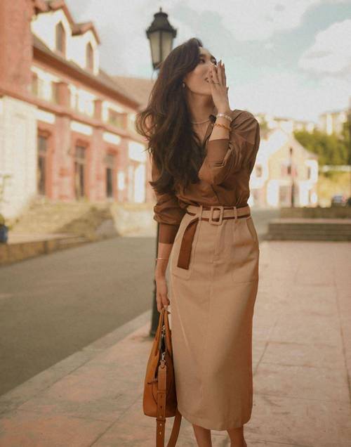 - 为什么好看:这是一个常见的误区,虽然大地色系(如卡其、驼色、咖啡色、姜黄)本身不“亮”,但它们的暖调与暗肤色非常和谐,能营造出一种自然、高级、沉稳的氛围,让肤色看起来更健康、有光泽。