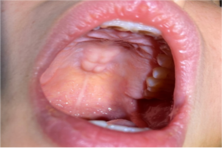 由于小唾液腺导管破裂,唾液漏入组织内形成,通常表现为一个柔软、半透明的小水疱,位于下唇、舌腹或上颚,感觉不光滑,有时会自行破裂消失,但容易复发。