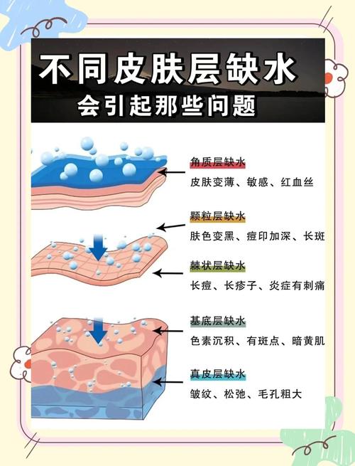 - 角质层吸水:最先受到影响的是皮肤最外层的角质层,这层细胞像干燥的海绵一样,会大量吸收水分,变得肿胀、松软。