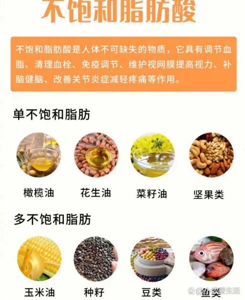 | Omega-6 | 植物油 (大豆油、玉米油、葵花籽油) | LA (亚油酸) | 维持皮肤和头发健康、支持神经系统(但需控制总量) |