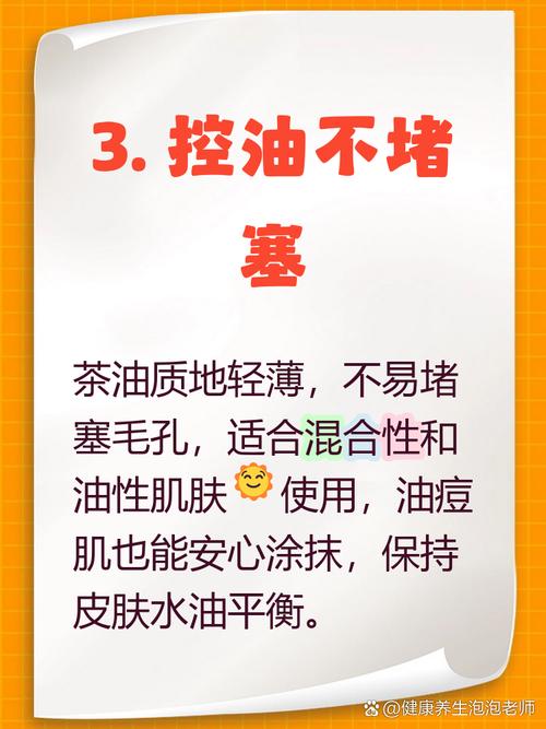 - 用量要适中: “油多不坏菜”在护肤上不适用,过量使用茶油会导致皮肤油腻、长痘,尤其是油性皮肤,遵循“少量多次”的原则。