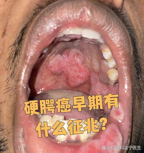 - 口腔内:嘴唇、牙龈、舌头、上颚、颊内侧等部位出现无法推动的、质地坚硬的肿块。