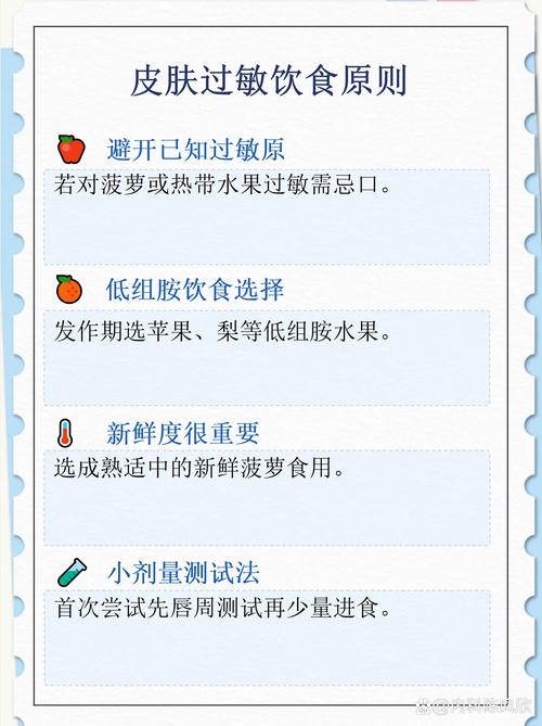 - 循序渐进地重新引入食物: 在过敏症状缓解后,如果想尝试之前避免的食物(如某种水果),建议一次只引入一种,并观察2-3天,看是否有不良反应。