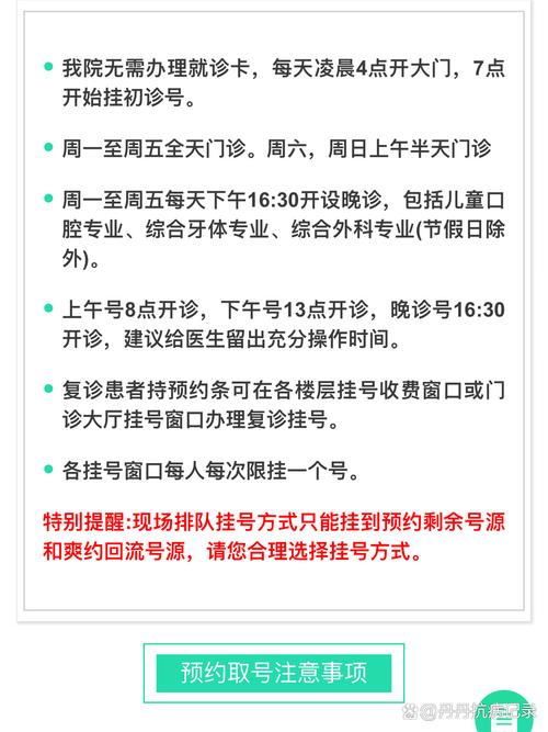 - 适用人群: 适用于复诊、取号或挂当天的号源(如果还有剩余的话),对于初诊或专家号,建议还是提前通过线上或电话预约。