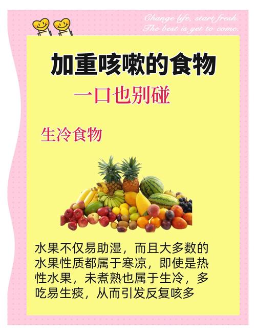 - 辛辣食物:如辣椒、花椒、芥末、咖喱、生蒜、生葱等,这些食物会刺激咽喉和气管,加重咳嗽。