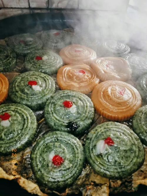 菠菠粿:这是福建福州一带最具代表性的清明食物,用菠菠草(鼠曲草)的汁液混合糯米粉制成,呈深绿色,馅料多为绿豆沙、芝麻、花生等甜馅,有时也会有咸馅。