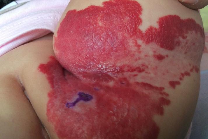- 红点迅速变大、破溃或疼痛。