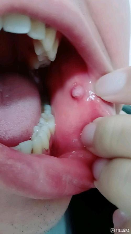 - 特点:通常是由于小唾液腺的导管被堵塞,导致唾液潴留而形成的半透明、柔软的小水泡或肉疙瘩,表面光滑,呈淡蓝色或正常粘膜颜色,一般不痛,但如果受到刺激或破裂,会引起肿痛和不适。