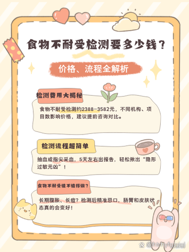 检查食物不耐受的费用从几百到几千元不等,主要取决于你检测的食物种类数量和选择的机构。强烈建议您先去看消化科或营养科医生,进行专业评估,医生会判断您是否真的需要做这项检测,并指导您选择最合适的检测方案,或者推荐更科学的饮食排除法来解决问题,切勿仅凭一份检测报告就自行改变长期饮食习惯。