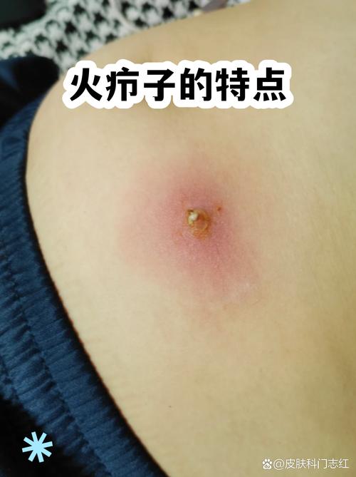 - 特点:由细菌(通常是金黄色葡萄球菌)感染毛囊或皮脂腺引起的急性化脓性炎症,开始时是一个红肿的硬结,逐渐变软,顶部出现白色脓点,疼痛明显。