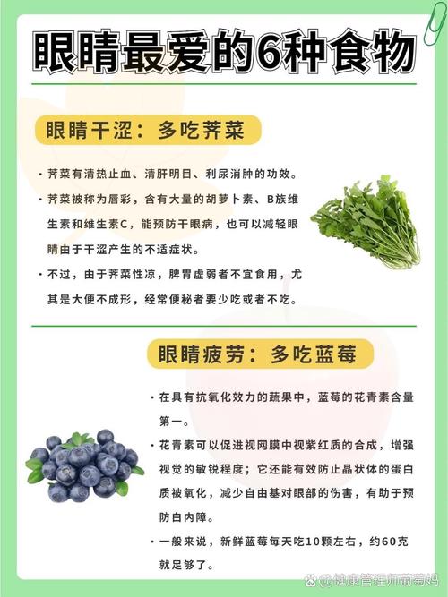 护眼食物有哪些? 保护眼睛健康,饮食是非常重要的一环,通过摄入特定的营养素,可以为眼睛提供“建筑材料”和“抗氧化剂”,帮助预防或延缓年龄相关性眼病,如白内障、黄斑变性等。(图片来源网络,侵删) 以下是对眼睛特别有益的食物分类和具体推荐,并解释了它们背后的科学原理。 核心营养素及富含这些营养素的食物 可以把眼睛想象成一...