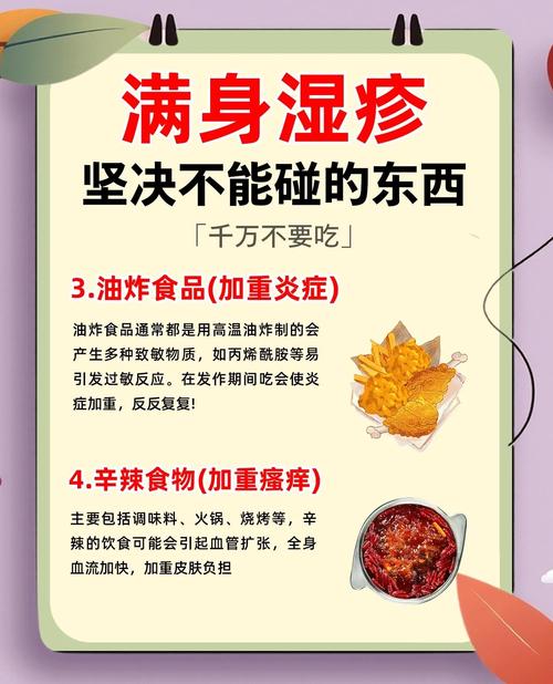 湿疹忌口有哪些?这些食物真不能吃? 以下是一些常见的、可能诱发湿疹的食物,您可以作为参考,但请务必结合自身情况来判断。(图片来源网络,侵删) 需要警惕和尽量避免的常见“发物” 这些食物是湿疹患者中常见的过敏原或诱因,建议您在湿疹发作期暂时避免,或者在医生指导下进行排查。 海鲜水产类 (高致敏性) 常见种类:虾、蟹、贝类(如蛤蜊、扇贝)...