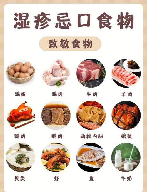 湿疹忌口?这些食物千万别碰! 需要高度警惕的常见过敏食物(大类) 这些食物是导致食物过敏的“元凶”,湿疹患者应首先排查它们是否是自己的诱因。(图片来源网络,侵删) 海鲜类(发物) 常见种类:虾、蟹、贝类(如扇贝、蛤蜊)、带鱼、黄鱼等。 原因:海鲜中的异种蛋白含量高,容易引发过敏反应,导致皮肤瘙痒、红肿加重,中医也认为海鲜是“发物...