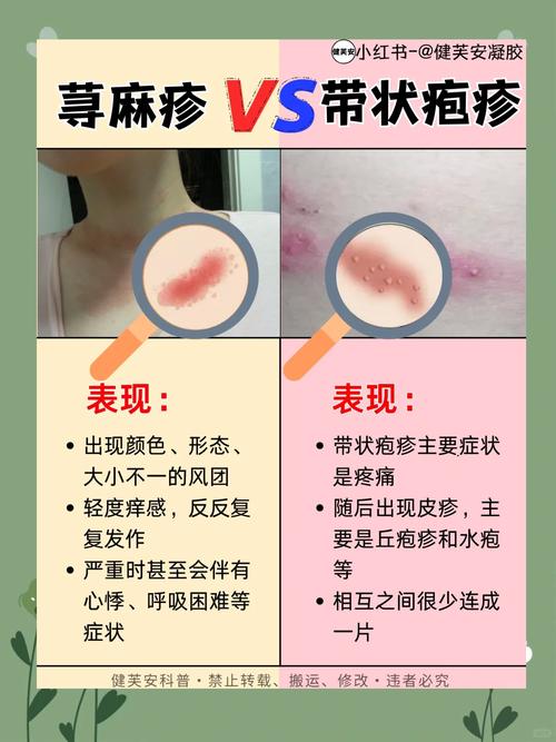 皮肤过敏和荨麻疹是一回事吗? 荨麻疹是皮肤过敏的一种特殊表现形式,但并非所有皮肤过敏都是荨麻疹。(图片来源网络,侵删) 下面我将从多个维度为您详细解释它们的区别。 核心概念区别 皮肤过敏:这是一个广义的术语,它指的是皮肤接触到或摄入了某种过敏原后,免疫系统过度反应,从而引发的一系列皮肤症状,过敏可以发生在皮肤的任何部位,症状也多...