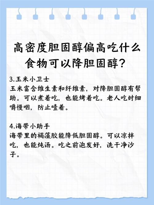高密度胆固醇偏高,吃什么食物能调节? 它就像我们血管里的“清道夫”,负责将血管壁上多余的胆固醇运回肝脏处理,从而降低心血管疾病的风险。不存在“偏高”需要降低的情况,反而是偏低需要引起重视。(图片来源网络,侵删) 如果您在体检报告上看到高密度胆固醇的数值很高,这通常是一个积极的信号,说明您的心血管健康基础比较好,为了维持和进一步提升这个“...