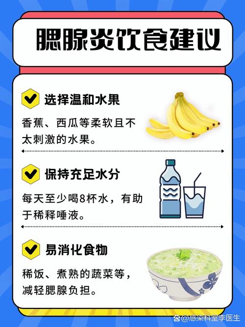 腮腺炎吃什么食物好?饮食要注意什么? 以下是针对腮腺炎不同阶段和症状的食物建议,以及需要避免的食物。(图片来源网络,侵删) 核心饮食原则 清淡易消化:生病期间,消化功能可能会减弱,应选择流质或半流质食物,减轻咀嚼和吞咽的负担。 温和不刺激:避免过酸、过辣、过烫、过硬的食物,这些会刺激腮腺,加重疼痛和肿胀。 营养均衡:保证充足的蛋白质、维...