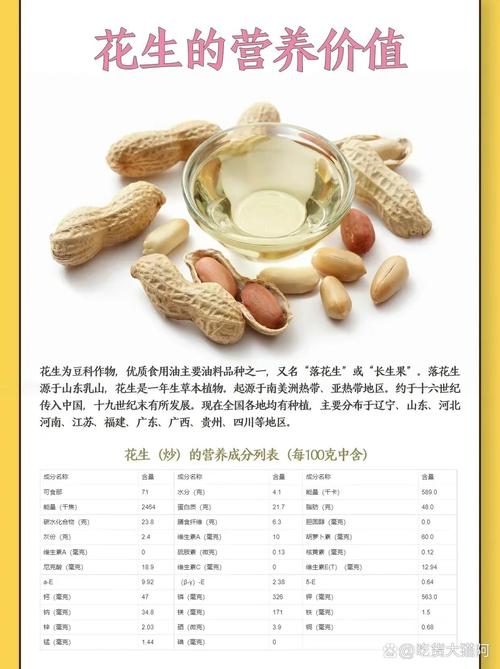 花生真的是高蛋白食物吗? 这是一个非常好的问题!答案是:花生既是高脂肪食物,也是高蛋白食物,但通常我们更侧重于将其归类为高脂肪食物。(图片来源网络,侵删) 为了更清晰地理解,我们来详细分解一下花生的营养成分: 花生的营养成分构成(以每100克生花生为例) 总热量: 约 567 千卡(热量相当高) 脂肪: 约 49 克 (占总...