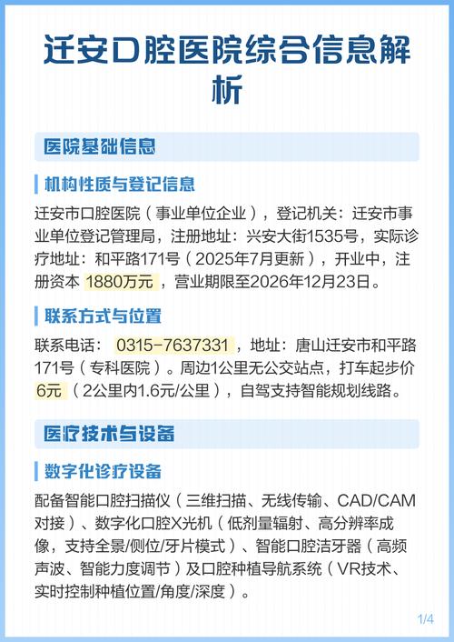迁安口腔医院电话号码是多少? 公立医院口腔科 如果您需要综合性的医疗保障,公立医院的口腔科是首选。(图片来源网络,侵删) 迁安市人民医院口腔科 这是迁安最权威的综合医院之一,口腔科设备和技术都比较全面,能处理各种口腔问题。 咨询电话:0315-7635120 (总机,请按提示转口腔科或直接询问) 医院地址:河北省唐山市迁安市永顺...