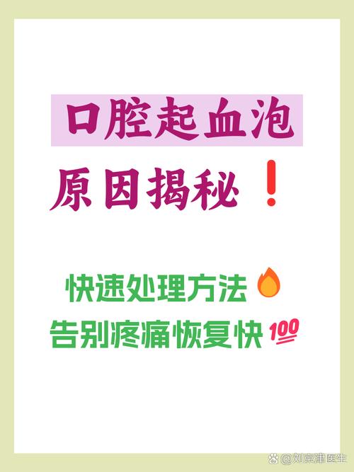 口腔打血泡,吃饭时咋办? 下面我为您详细分析一下可能的原因,并提供一套从紧急处理到长期预防的完整方案。(图片来源网络,侵删) 为什么会口腔打血泡? 口腔血泡的形成主要是因为口腔黏膜下的毛细血管或小血管破裂,血液流到黏膜下层形成的,常见原因有以下几种: 物理性创伤(最常见) 咬伤:吃饭时不小心咬到自己的脸颊内侧、舌头或嘴唇,这...