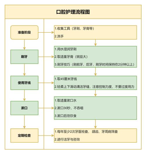口腔专科护理操作流程有哪些关键步骤? 口腔专科护理操作总流程 口腔护理的核心流程是一个循环往复、不断优化的过程,主要包括以下五个关键阶段:(图片来源网络,侵删) 治疗前准备 治疗中配合 治疗后整理 消毒与感染控制 医患沟通与健康宣教 第一阶段:治疗前准备 此阶段的目标是为医生创造一个高效、安全、有序的治疗环境,并为患者提供舒适的第一印象...