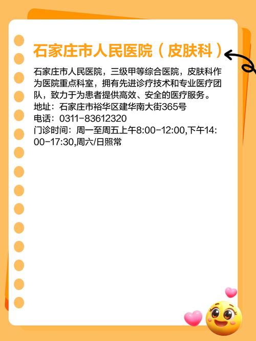 石家庄皮肤病专科医院靠谱吗? 石家庄作为河北省省会,拥有多家在皮肤病诊疗方面表现突出的医院,主要可以分为公立综合医院的皮肤科和皮肤病专科医院两大类,它们各有优势,患者可以根据自己的具体需求(如疑难重症、常见病、性价比、交通便利性等)进行选择。(图片来源网络,侵删) 公立综合医院皮肤科(实力雄厚,首选推荐) 公立三甲医院的皮肤科通...