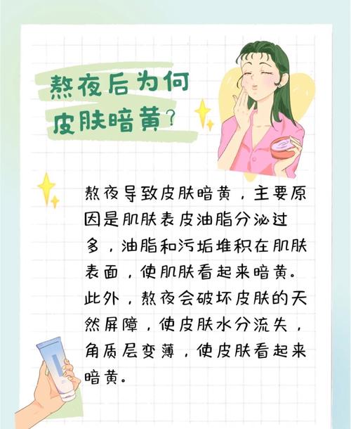 熬夜皮肤暗黄,如何快速改善? 我们来理解一下为什么熬夜会让皮肤变黄:(图片来源网络,侵删) 血液循环变差:睡眠是身体自我修复的黄金时间,熬夜时,皮肤血管会收缩,血液循环不畅,导致皮肤得不到足够的氧气和营养,新陈代谢废物也难以排出,肤色自然会变得暗沉、发黄。 糖化反应加剧:熬夜会影响身体的代谢功能,导致血糖水平更容易升高,过高的血...