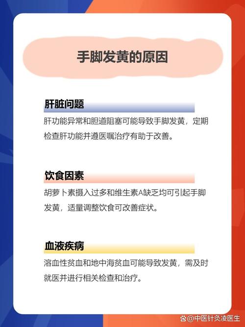 手脚皮肤黄是什么原因 生理性/生活习惯性原因(最常见) 这类原因通常无害,调整生活习惯后可以改善。(图片来源网络,侵删) 饮食因素(胡萝卜素血症) 这是导致手脚皮肤发黄最常见且无害的原因。 原因:短期内摄入了大量的富含胡萝卜素的食物,胡萝卜素是维生素A的前体,人体无法完全代谢时,多余的会沉积在皮肤的角质层,尤其是在手掌、...