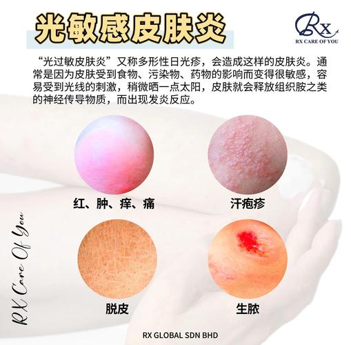 哪些皮肤病一晒太阳就加重? 核心需要严格避光的皮肤病(光敏性皮肤病) 这类疾病的核心问题是皮肤对光不耐受,日晒是诱发皮损的直接原因。(图片来源网络,侵删) 日光性皮炎 / 多形性日光疹 为什么不能晒: 这是最常见的光敏性皮肤病,患者的免疫系统对紫外线产生异常反应,导致皮肤在日晒后出现红斑、丘疹、水疱、瘙痒、刺痛等症状。“多形性...
