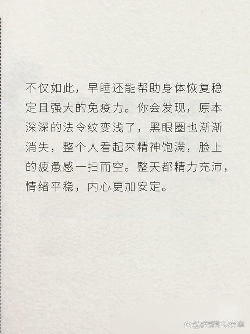 - 减轻压力:熬夜本身就是一种巨大的生理和心理压力,压力大会导致皮质醇升高,并可能引发“压力痘”(Stress Acne),早睡早起能有效缓解压力,让皮肤更平和。