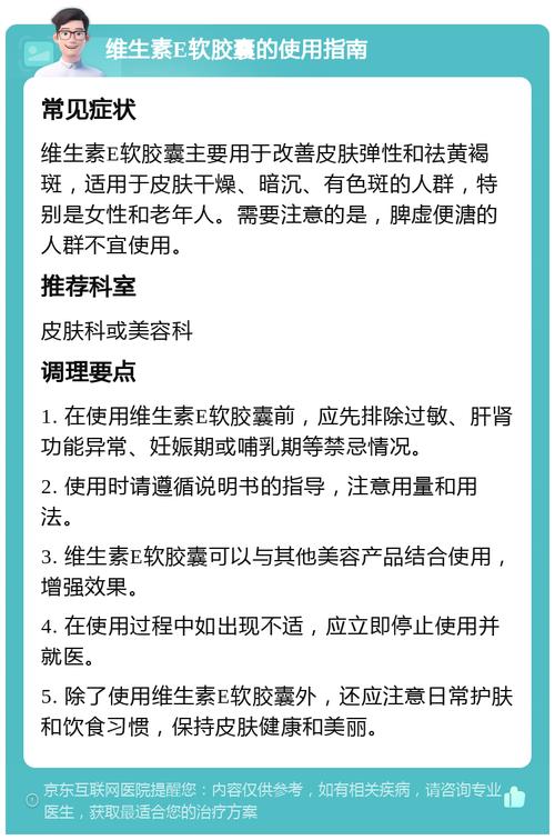 - 切勿过量: 长期大剂量服用维生素E补充剂可能导致副作用,如增加出血风险、恶心、头痛等,建议优先从食物中获取,如需补充剂,请务必咨询医生或药师,遵循推荐剂量。