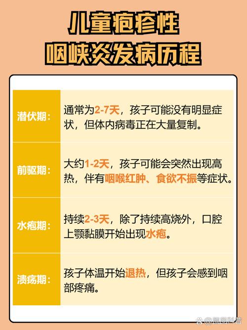 疱疹性咽峡炎是自限性疾病,通常一周左右会自愈,在此期间,精心的饮食护理和对症治疗(如遵医嘱使用退烧药)能让孩子舒服很多,顺利度过这个难受的阶段,如果孩子出现高烧不退、精神萎靡、拒绝进食饮水超过6小时、尿量明显减少等脱水迹象,请及时就医。
