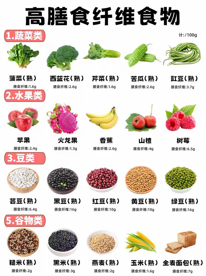- 多样化摄入:没有哪种食物是完美的,最好的方式是均衡饮食,从各种不同的食物中获取纤维。