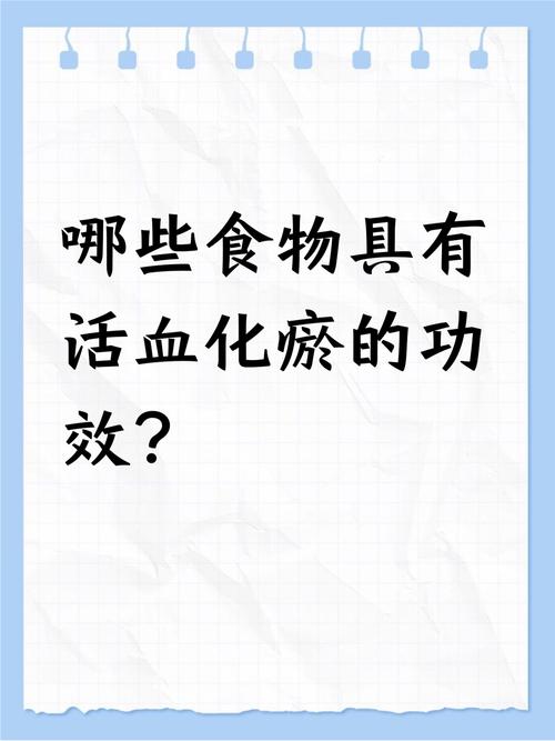 有活血化瘀功效的食物在我们的日常饮食中非常常见,它们主要通过促进血液循环、消除体内瘀血、改善气血运行来发挥作用,以下是一些常见的活血化瘀食物,并按照功效和性质进行了分类,方便您参考。