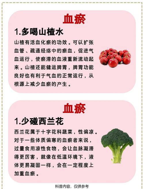 - 适量为宜: 任何食物都不宜过量,活血化瘀食物也不例外,过量可能导致出血倾向或耗伤正气。