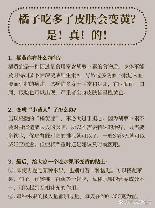 “吃橘子皮肤变黄” 本质上是身体在提醒您:短期内蔬果摄入量超标了。