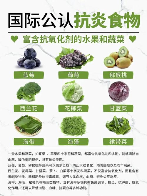 - 富含抗氧化剂的食物: 对抗自由基,减轻炎症。