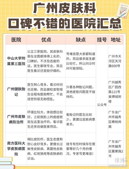 | 省皮防院 | 华南最大专科医院,资源集中 | 所有皮肤病,尤其性病、麻风病 | 所有皮肤病患者,尤其是复杂病例 | 挂号紧张,环境相对普通 |