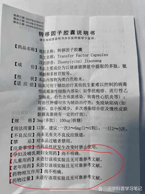 - 安全性:总体而言,转移因子的安全性较好,副作用较少,最常见的是注射部位可能出现疼痛、红肿,少数人可能出现一过性发热、头晕等,但作为生物制品,仍有引起过敏反应的可能。