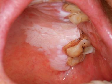 - 牙齿锐利边缘或残根、残冠: 比如蛀牙的边缘、不假牙的基托边缘、牙齿上不规则的牙尖,长期摩擦或刺激颊黏膜。