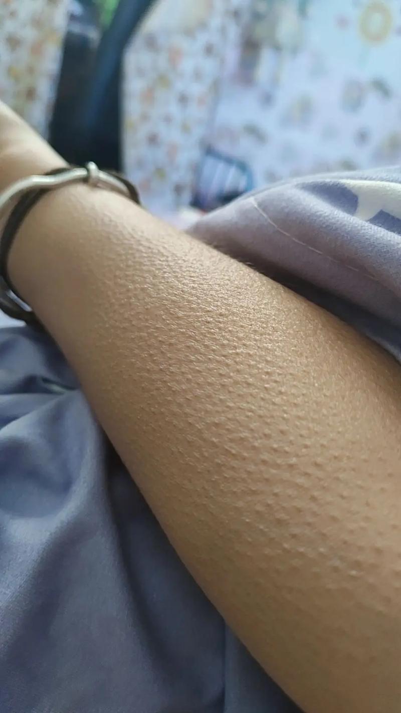 - 外观:皮肤上出现针头大小的、红色或肤色的小丘疹,摸起来粗糙有颗粒感。