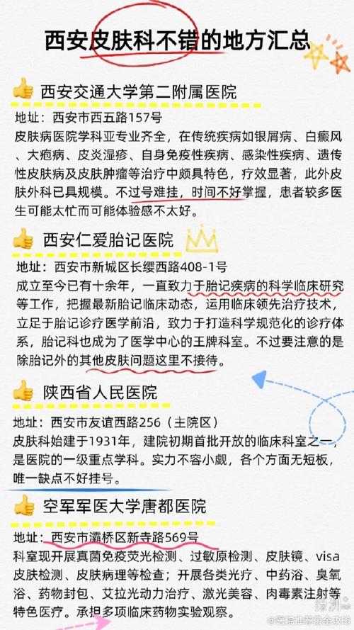 (图片来源网络,侵删)- 普通皮肤病(如轻微湿疹、痘痘、过敏、寻常疣等):可以选择市一院、莲湖肤康,或者离家较近的二级医院皮肤科,方便快捷。