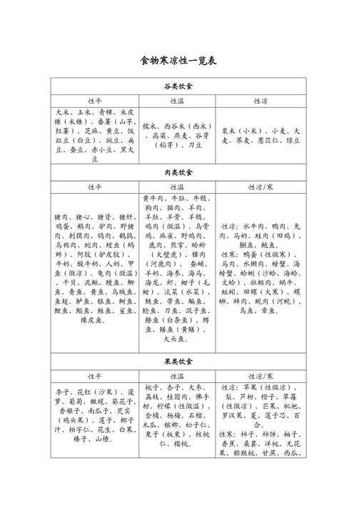 下面我将凉性食物按照类别进行划分,并列出具体例子,方便您参考。