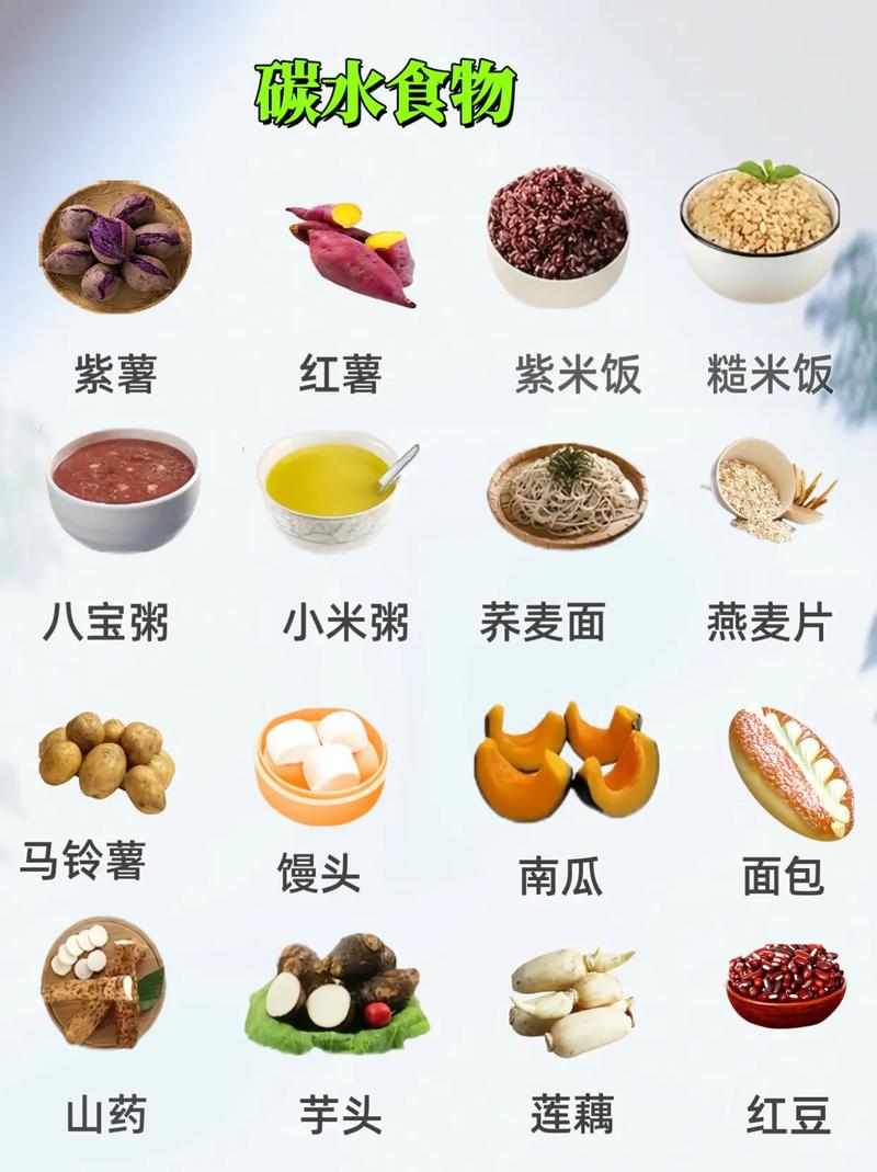 - 豆类: 扁豆、鹰嘴豆、黑豆、芸豆等(注意:豆类也含有一定量的碳水化合物,但相比谷物和水果要少,且富含纤维)。
