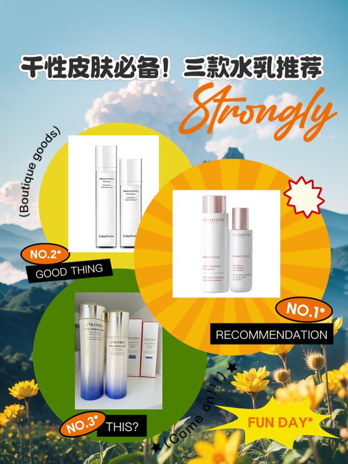 - 乳液:质地轻薄,适合春夏或油性干皮(T区油,两颊干)。