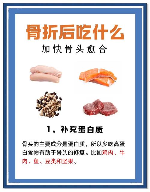 - 骨折中期(2周-数月):这是骨痂形成的关键时期,应重点补充钙、蛋白质和维生素D,如上述推荐食物,为骨骼修复提供充足原料。