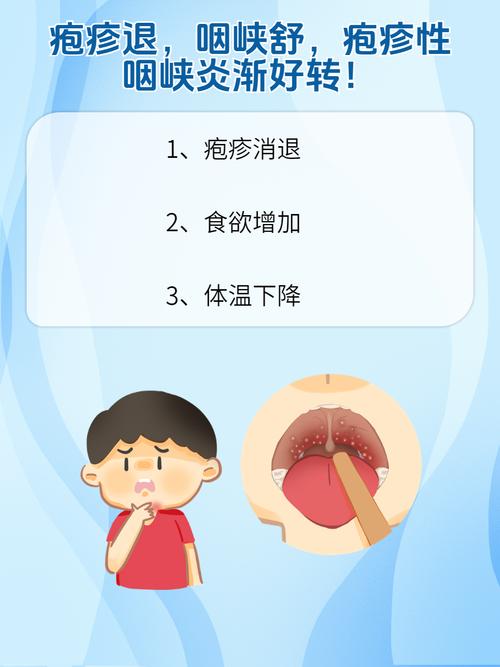 - 注意隔离:如果怀疑是疱疹性咽峡炎或手足口病等具有传染性的疾病,请注意个人卫生,勤洗手,避免亲吻、共用餐具和毛巾,以防传染给家人,尤其是儿童。