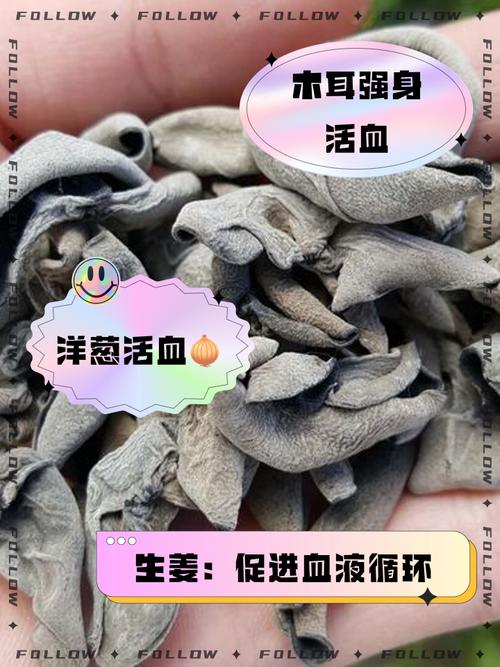 - 黑木耳: 性平,被誉为“血管清道夫”,能降低血液粘稠度,促进血液循环,是食疗中常用的活血食物。